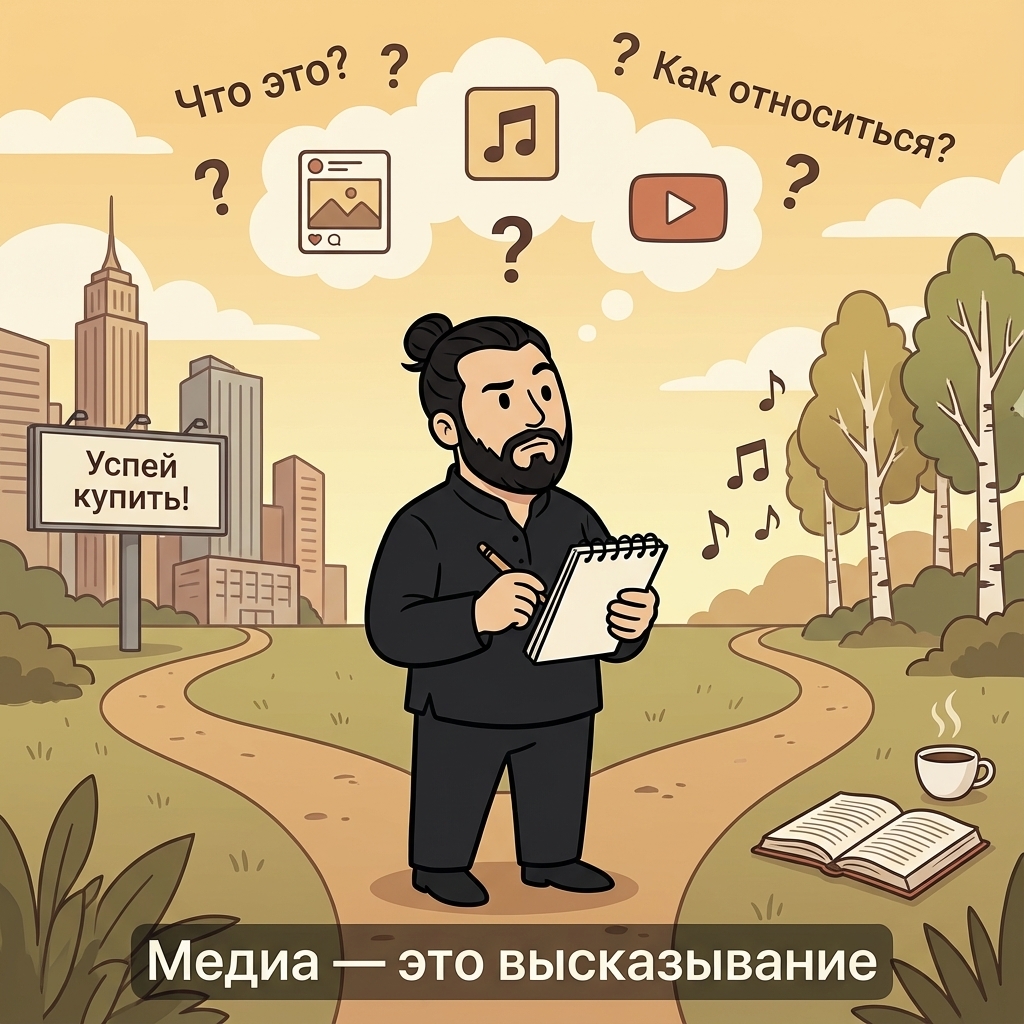 Понял простую мысль: любое медиа — это высказывание. Каждый пост, песня, видео или продукт отвечает на вопросы: “что это?” и “как к этому относиться?”