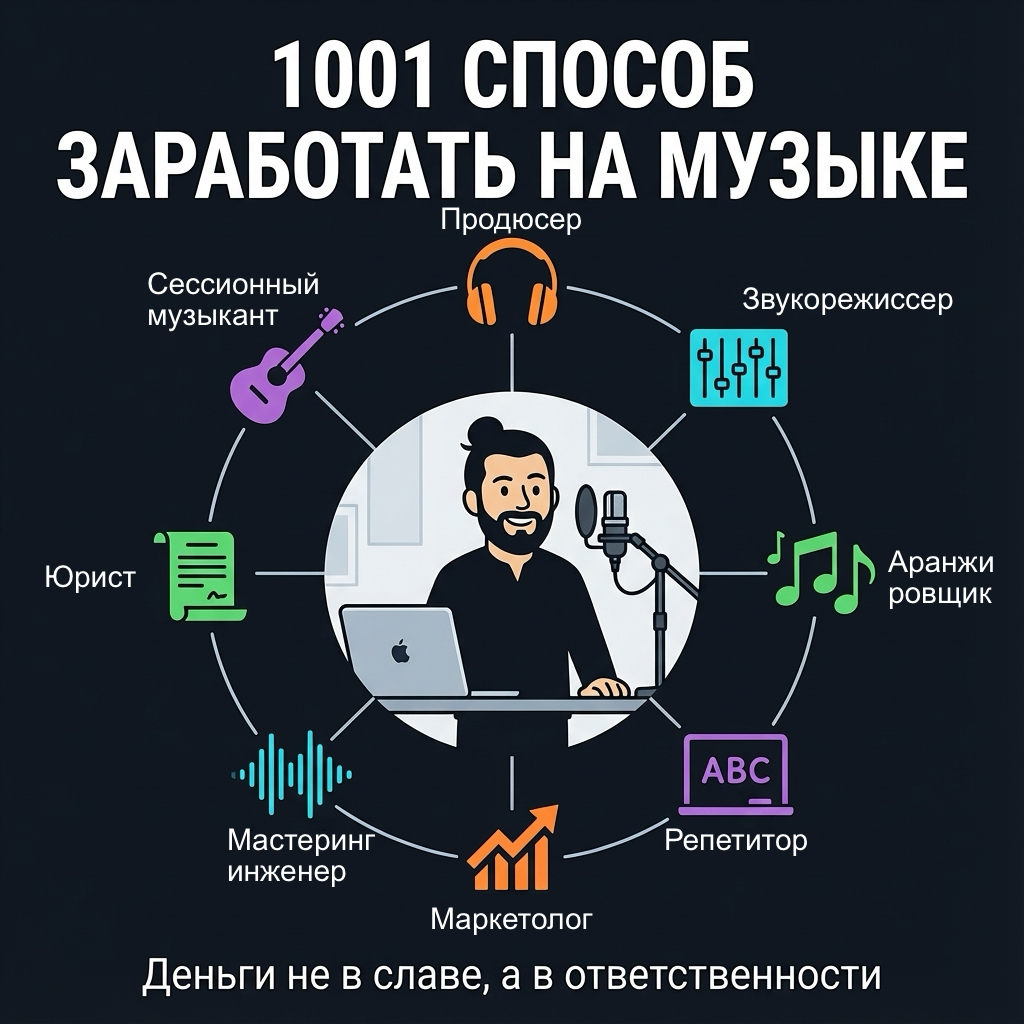 - Музыка для рекламы — джинглы, фоновые треки для коммерческих проектов (от 50 000₽ до 500 000₽+ за проект)